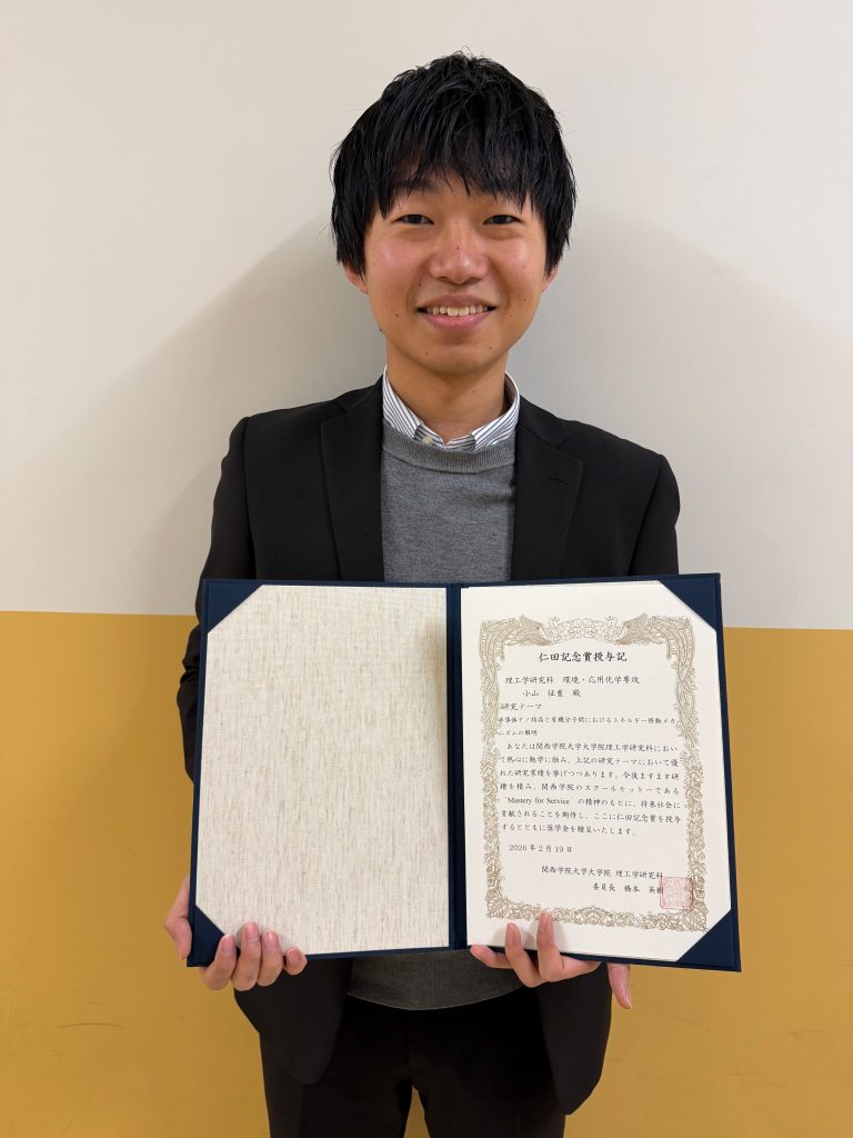 2026年2月19日、M2の小山征重くんが仁田記念賞を受賞しました!おめでとうございます㊗️